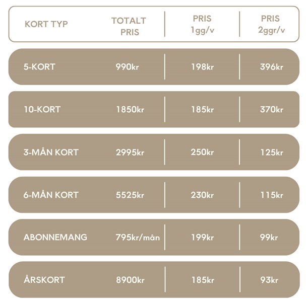 Du kan köpa ditt kort online eller på plats i studion med kort eller Swish.