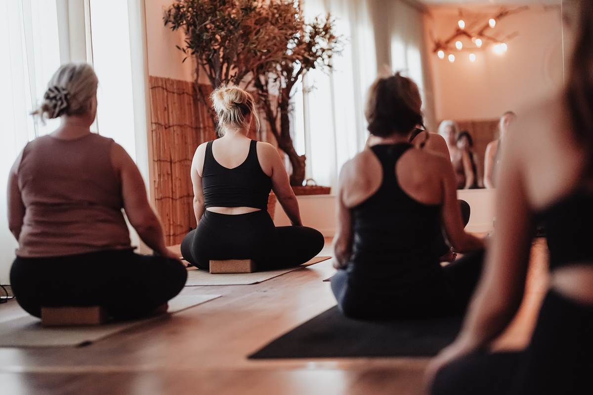 Vi har yogamattor, filtar och bolster på plats – men ta gärna med en vattenflaska och en liten handduk.